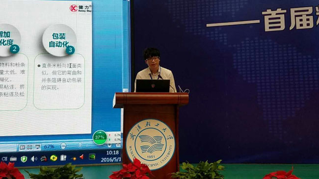 5月17~18日,在武漢輕工大學(xué)舉行的由國家糧食局、中國科協(xié)主辦的2016年全國糧食科技活動周上,我司研發(fā)的全自動直條米粉生產(chǎn)線被列為全國首屆糧食科技成果轉(zhuǎn)化對接推介重點項目。公司總經(jīng)理助理王起在推介活動會上作了發(fā)言。