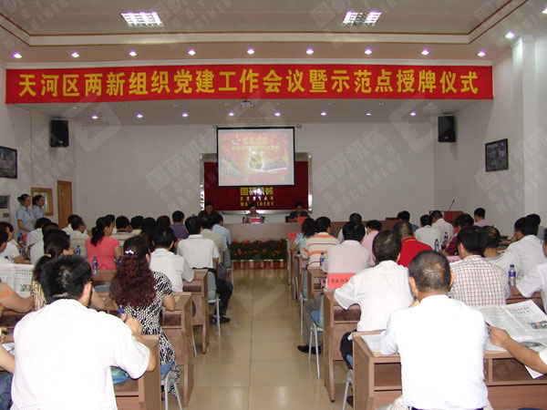 7月2日下午,天河區(qū)“兩新組織”黨建工作現(xiàn)場會暨黨建工作示范點授牌儀式在廣州市國研機(jī)械設(shè)備制造有限公司隆重舉行。天河區(qū)委常委、組織部部長潘文捷、廣州市委組織部組織處處長邱培藩、天河區(qū)委組織部副部長陳璋、公司董事長兼總經(jīng)理王聲位、珠吉街黨工委書記杜黨勇、辦事處主任周國棟等出席了會議。
