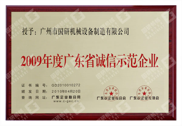此次被評(píng)為“2009年度廣東省誠信示范企業(yè)”,是對(duì)國研機(jī)械的一次巨大鼓舞和鞭策。國研機(jī)械將再接再厲,以“誠信經(jīng)營”作為企業(yè)生存之本,忠實(shí)履行企業(yè)經(jīng)濟(jì)責(zé)任與社會(huì)責(zé)任,做用戶最信賴的企業(yè),為社會(huì)提供最優(yōu)質(zhì)的產(chǎn)品與服務(wù)。