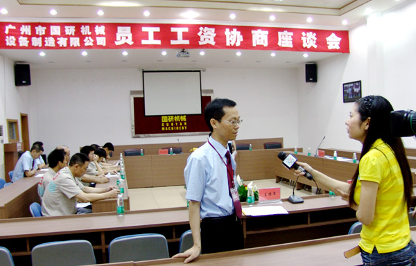 近年來,廣州市國(guó)研機(jī)械設(shè)備制造有限公司在公司董事會(huì)正確領(lǐng)導(dǎo)和公司黨支部的支持下,公司工會(huì)深入調(diào)研,多方征求意見,積極向公司高層管理提出建議,推動(dòng)了公司工資協(xié)商機(jī)制的不斷完善。公司建立了科學(xué)合理的薪酬體系,確立了員工優(yōu)先的協(xié)商模式,讓員工自己的工資自己作主。公司堅(jiān)持員工工資協(xié)商實(shí)現(xiàn)了企業(yè)效益和員工利益的雙贏,從根本上調(diào)動(dòng)了員工的積極性和創(chuàng)造性,提合理化建議非常踴躍,僅去年員工合理化建議就達(dá)300多條,為公司創(chuàng)造價(jià)值數(shù)百萬元;同時(shí)公司員工積極投入到節(jié)能降耗、技術(shù)創(chuàng)新、品質(zhì)改良等生產(chǎn)經(jīng)營(yíng)中來,公司業(yè)績(jī)大幅攀升,今年上半年銷售額比去年同期增長(zhǎng)20%。近三年來,公司員工技術(shù)創(chuàng)新115項(xiàng),為公司增加效益300余萬元,公司10年未發(fā)生過集體勞資糾紛,全體員工每年工資得到較大幅度增長(zhǎng),特別在金融危機(jī)期間公司員工工資不降反升,平均工資增長(zhǎng)12%,福利待遇明顯提高。