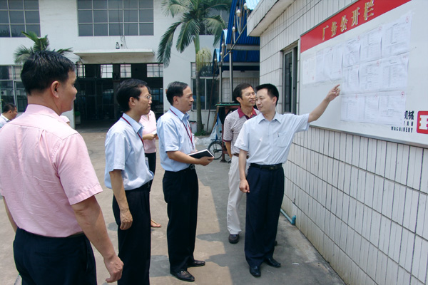 2010年8月5日上午,廣州市天河區(qū)廠務(wù)公開(kāi)檢查組在區(qū)委組織部副部長(zhǎng)郭明富、天河區(qū)工商業(yè)聯(lián)合會(huì)秘書(shū)長(zhǎng)利響率領(lǐng)下對(duì)我司廠務(wù)公開(kāi)工作進(jìn)行檢查指導(dǎo),公司黨支部書(shū)記兼廠務(wù)公開(kāi)領(lǐng)導(dǎo)小組組長(zhǎng)王聲躍、工會(huì)主席兼廠務(wù)公開(kāi)監(jiān)督小組組長(zhǎng)劉啟剛陪同檢查并向檢查組領(lǐng)導(dǎo)一行做了工作匯報(bào)。