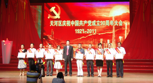 6月29日下午,廣州市天河區(qū)慶祝中國共產(chǎn)黨成立90周年暨先進(jìn)基層黨組織、優(yōu)秀共產(chǎn)黨員、優(yōu)秀黨務(wù)工作者表彰大會在天河區(qū)政府機(jī)關(guān)大會場內(nèi)隆重舉行。區(qū)委書記、區(qū)人大主任劉悅倫出席會議并發(fā)表講話,向區(qū)全體黨員和與會代表致以誠摯的問候,并向受到表彰的先進(jìn)基層黨組織、優(yōu)秀共產(chǎn)黨員和優(yōu)秀黨務(wù)工作者表示熱烈祝賀。