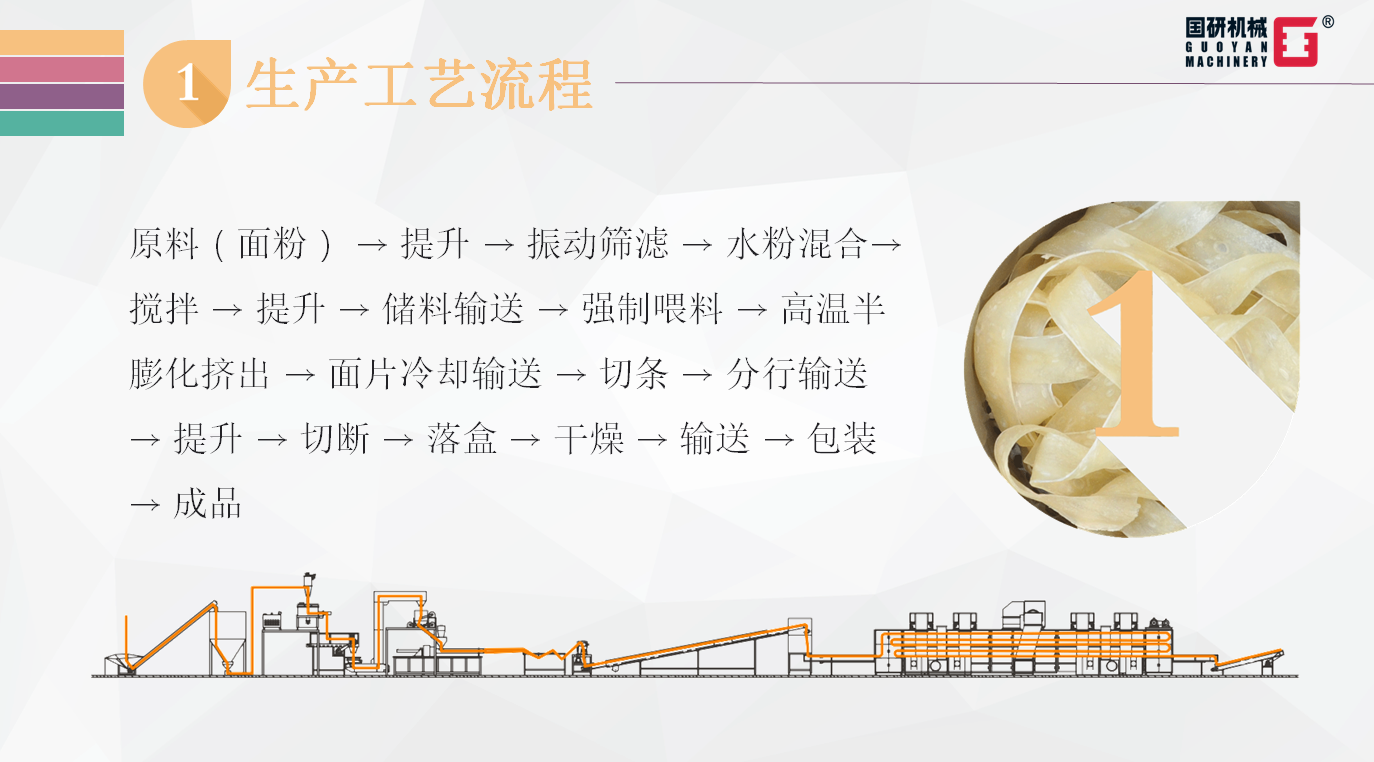 高溫半膨化方便面是一種非油炸方便面,沖泡3~5分鐘即可食用。由于不含防腐劑、食用膠等添加劑,即可使其復(fù)水性好,面條勁道,深受廣大消費者喜愛,現(xiàn)已經(jīng)成為非油炸方便面中的主要產(chǎn)品之一。經(jīng)過研究和實踐,本公司于2017年成功研發(fā)了連續(xù)自動化KW6生產(chǎn)線和生產(chǎn)工藝,適用于刀削寬面、重慶小面和陜西干涼皮等產(chǎn)品。